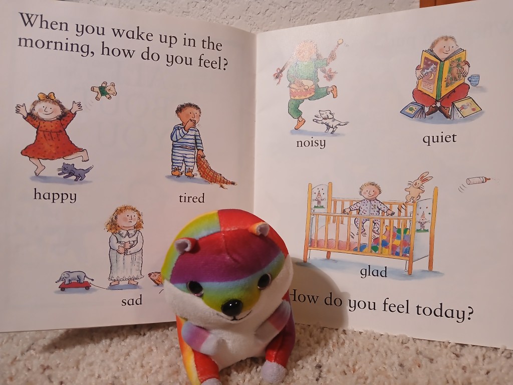 This is a great book to help you get to know yourself and others. One question is “When you wake up in the morning, how do you feel?” Heidi feels a little sleepy until she unrolls and stretches. Then she is happy. How do you feel today?