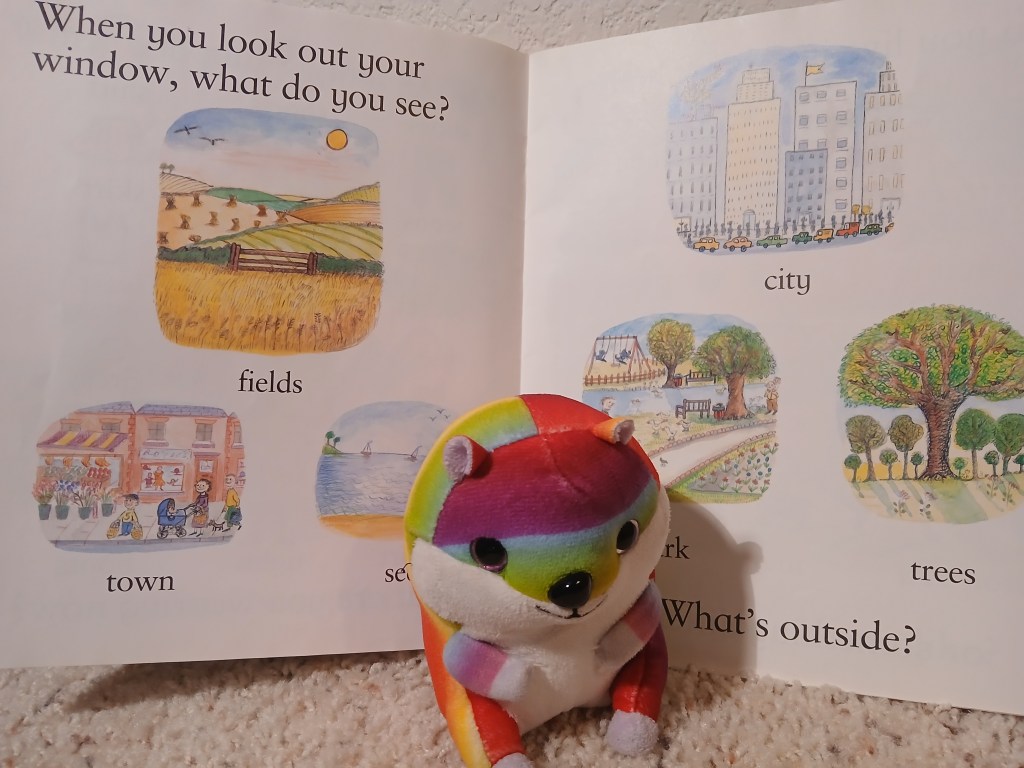 Another question is “When you look out your window, what do you see?” Heidi sees a park and some trees.